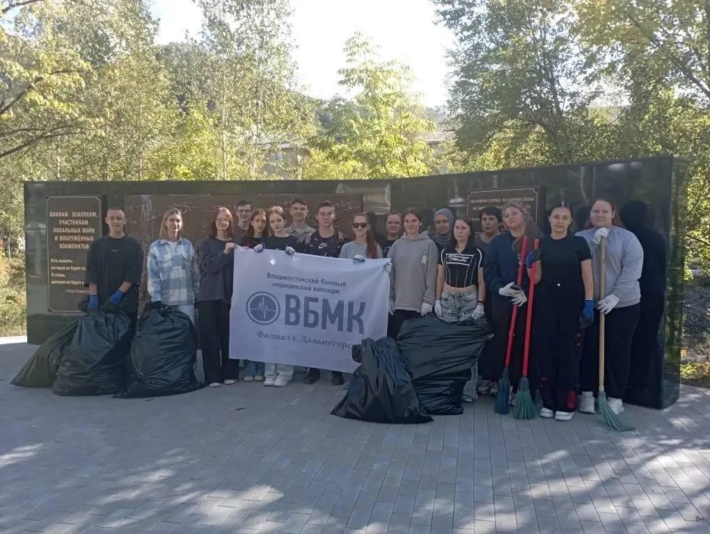 Дальнегорск отметил 128 день рождения. В преддверии праздника,19 сентября студенты первых курсов Дальнегорского филиала присоединились к молодёжным организациям города и вышли на уборку памятника Воинам-Дальнегорцам в годы Великой Отечественной войны и сквера Героям-Дальнегорцам.