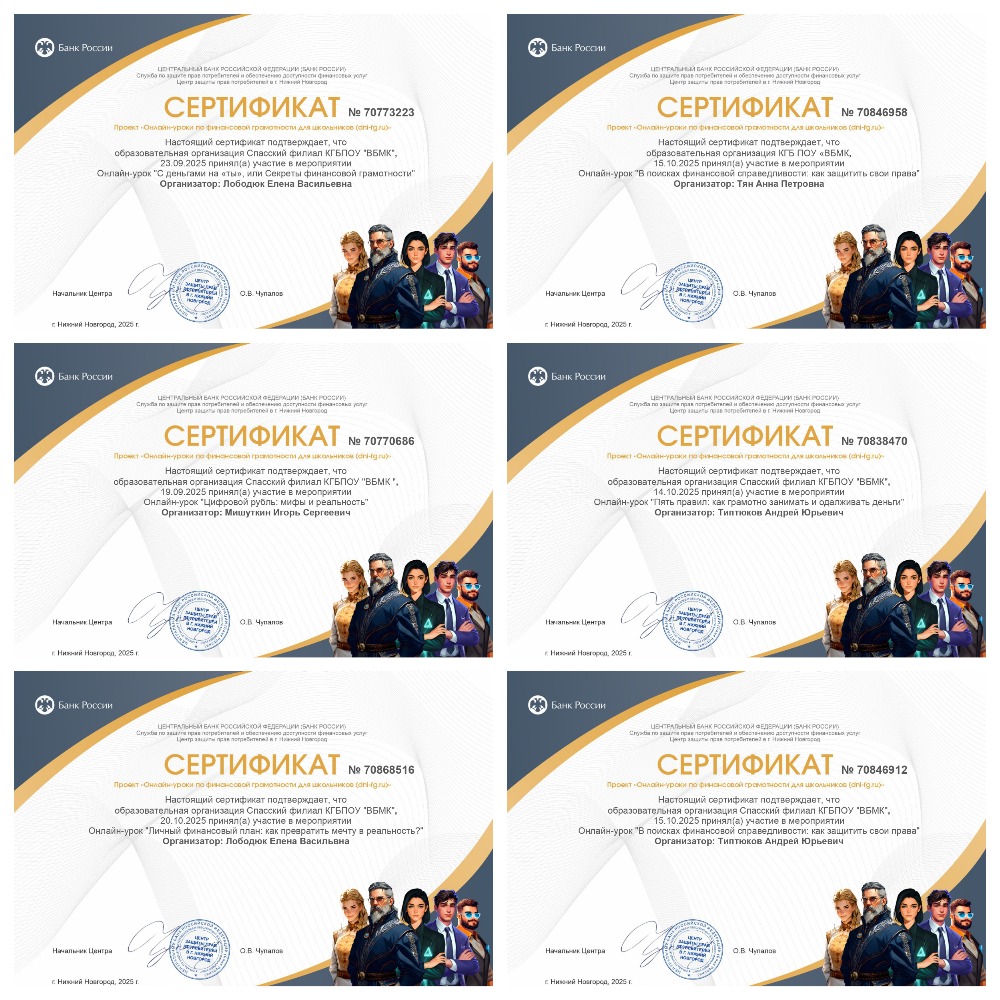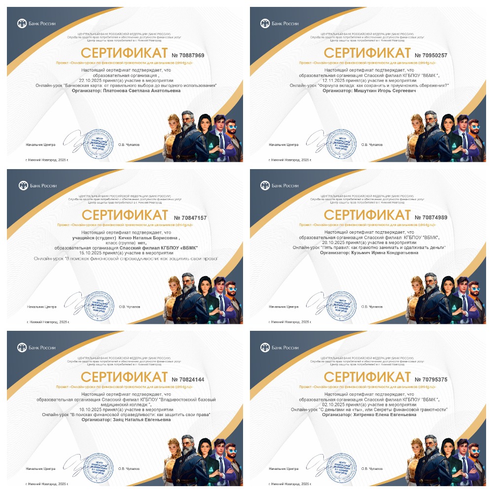 Преподаватели и студенты Спасского филиала КГБПОУ «ВБМК» активно принимают участие в осенней сессии онлайн-уроков финансовой грамотности от Банка России.