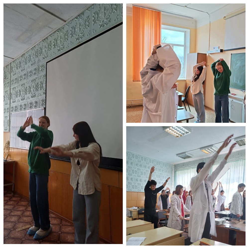 Остальные студенты, оставшиеся в кабинетах, выполняли комплекс разминки для динамической паузы.