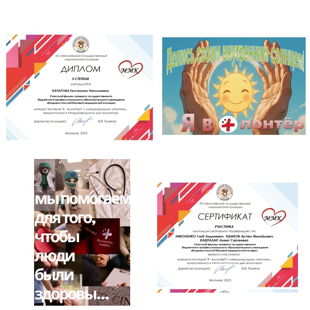 В преддверии Дня волонтера студенты филиалов принимали участие в международном конкурсе постеров «Я – волонтер!», который проводил медицинский колледж города Могилев.