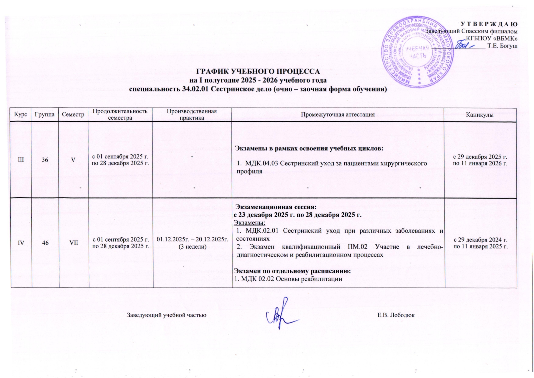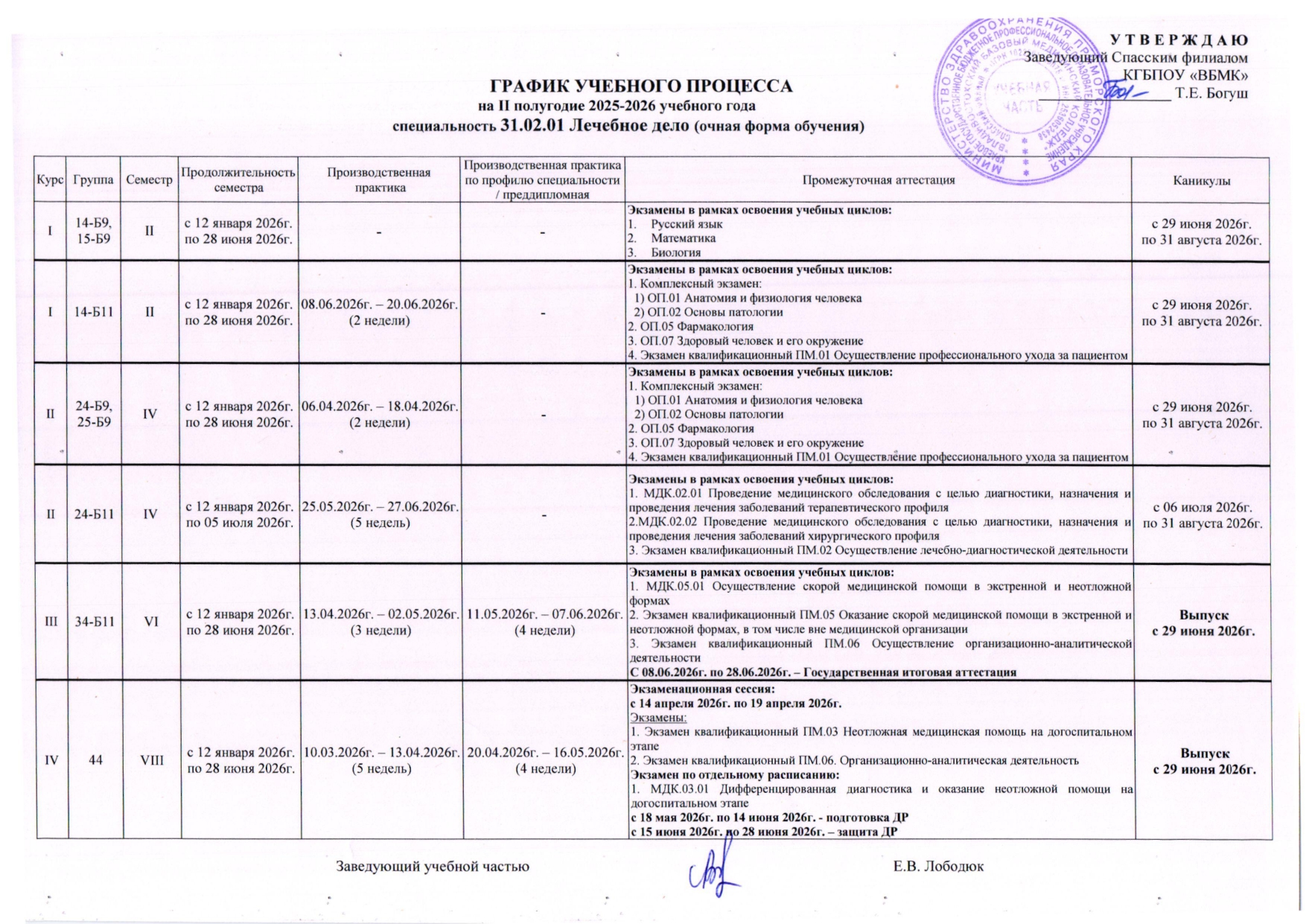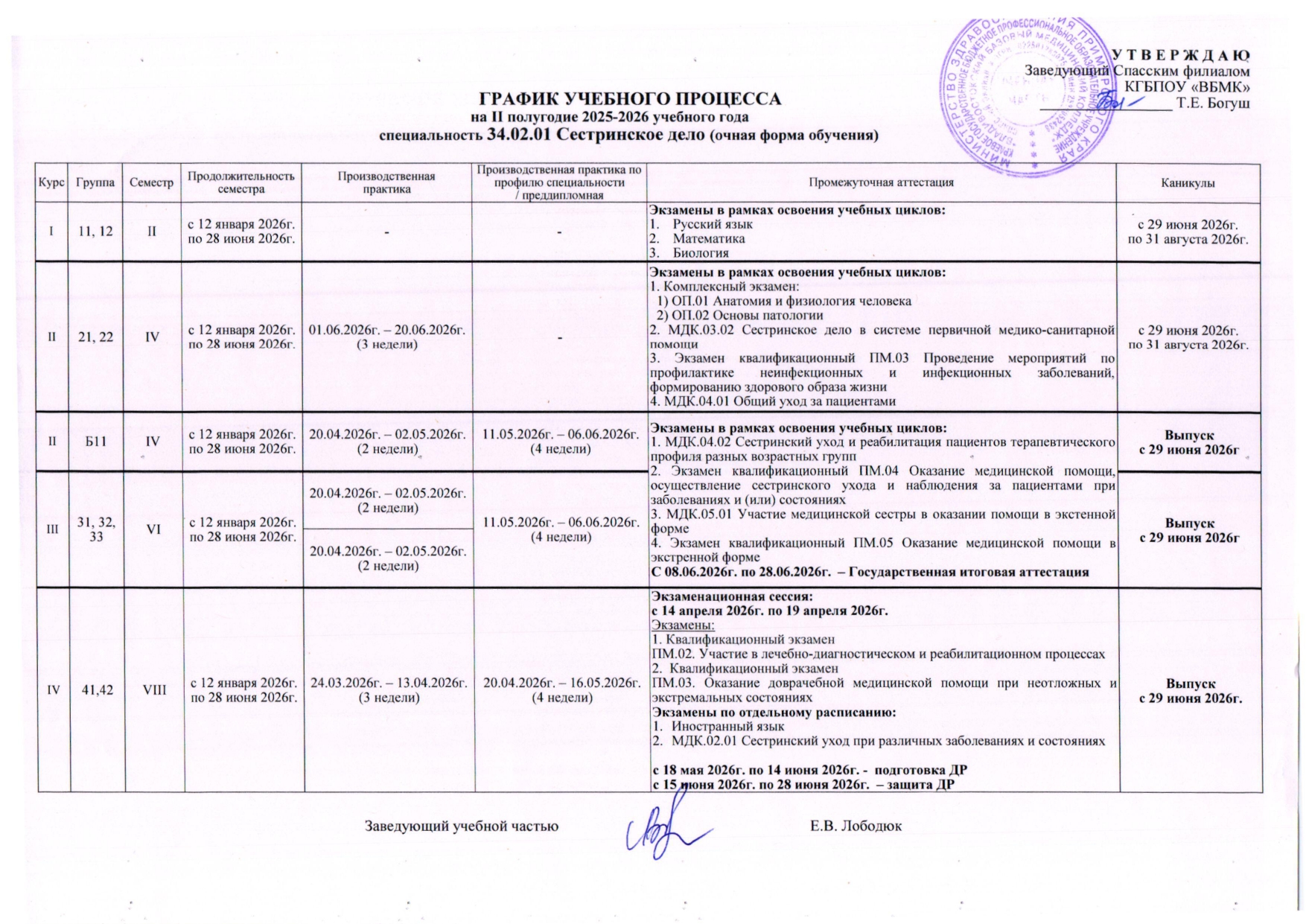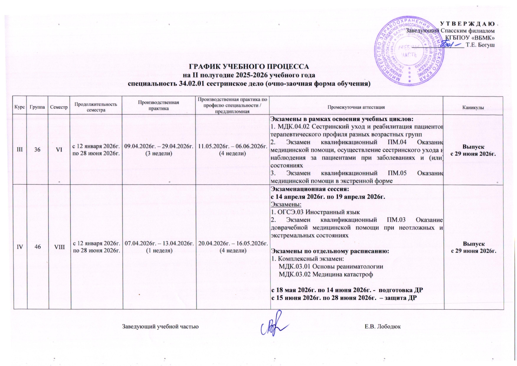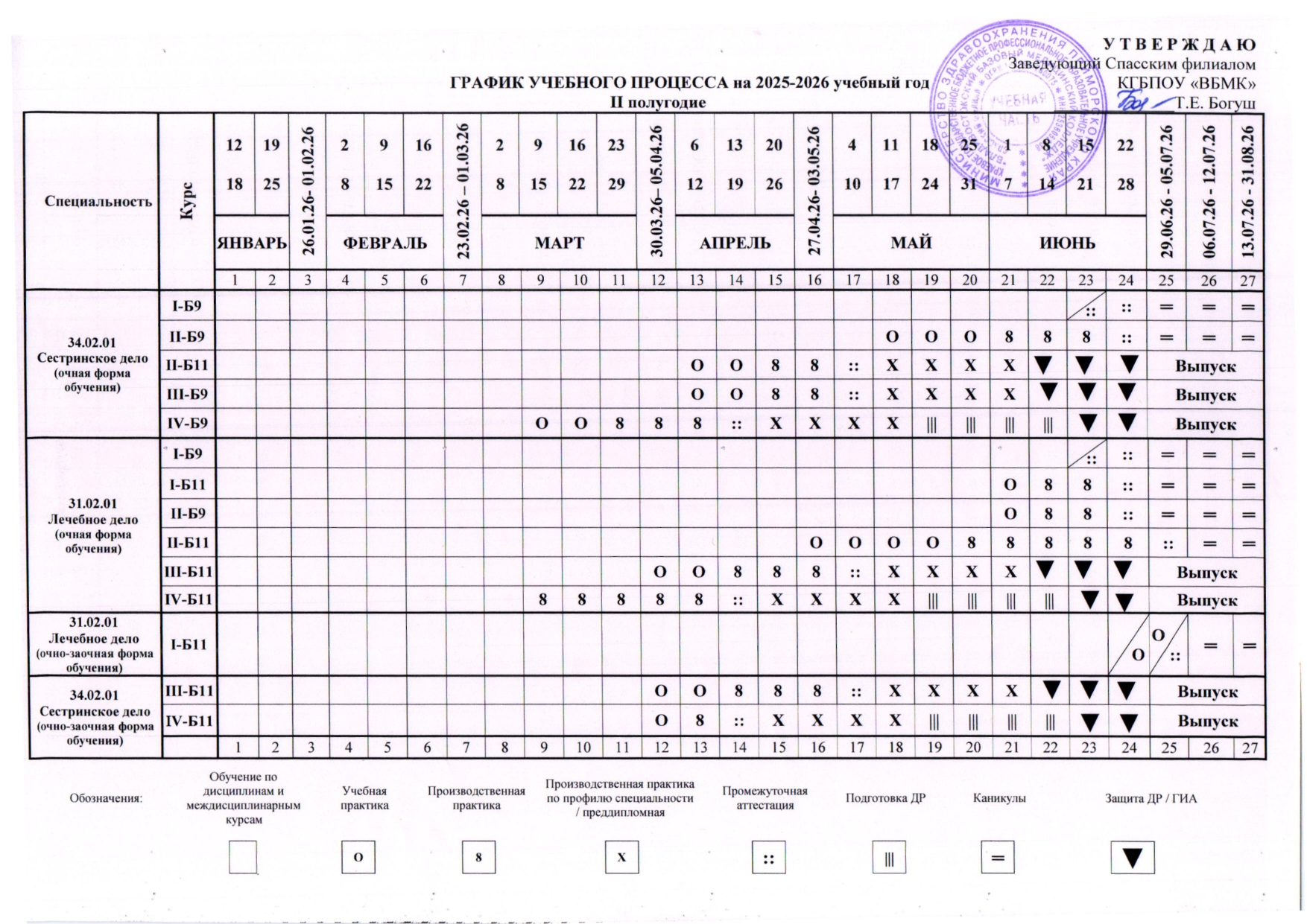 Календарный учебный график на II полугодие 2025-2026 учебного года